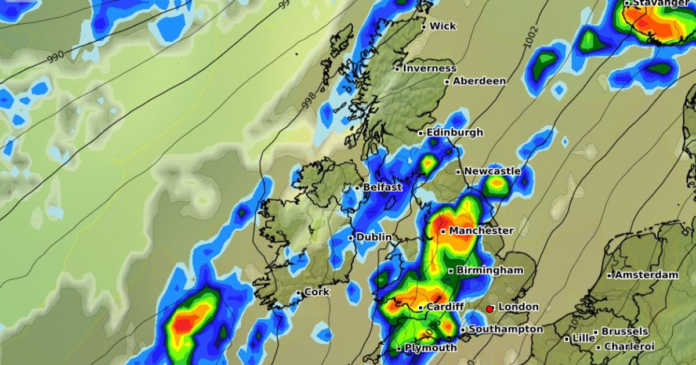 Britons residing in 20 areas have been advised to prepare an ’emergency’ flood kit along with essential items. The Met Office has issued a yellow weather warning for rain, effective from midday today until 8 am tomorrow, encompassing significant portions of South Wales and the southwest of England.