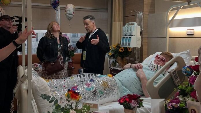The 78-year-old music icon shared a series of photos on Instagram, depicting him in a hospital gown with bedazzled leg casts and a neck brace, surrounded by flowers and fellow cast members. Many fans assumed he was hospitalized and sent well wishes for his quick recovery.