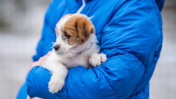 Providing a well-fitted jacket helps smaller dogs retain body heat during brief walks. Puppies, like small breeds, struggle to regulate their body temperature and tire quickly in cold conditions. Short, frequent walks can prevent them from getting too cold.
