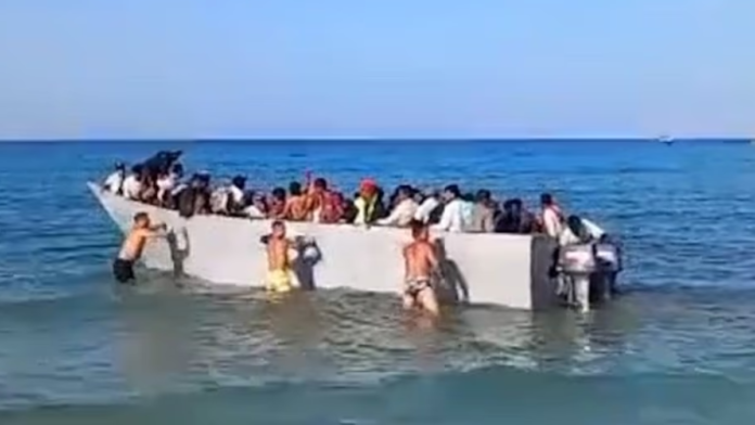 Tourists were observed pushing a boat full of migrants away from the coastline as it tried to land on a beach in Greece. The incident, captured on video on Saturday, showed a small vessel carrying asylum seekers from Libya approaching Sarakiniko beach in the southern Greek island of Gavdos. Onlookers at the beach rushed into the water to prevent their arrival, physically pushing the boat back.