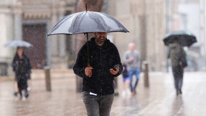 The Met Office’s forecast for Saturday through Monday suggests the eastward spread of rain on Saturday, with conditions becoming milder but windy over the weekend, accompanied by further rain or showers on Sunday and Monday, interspersed with occasional brighter spells.